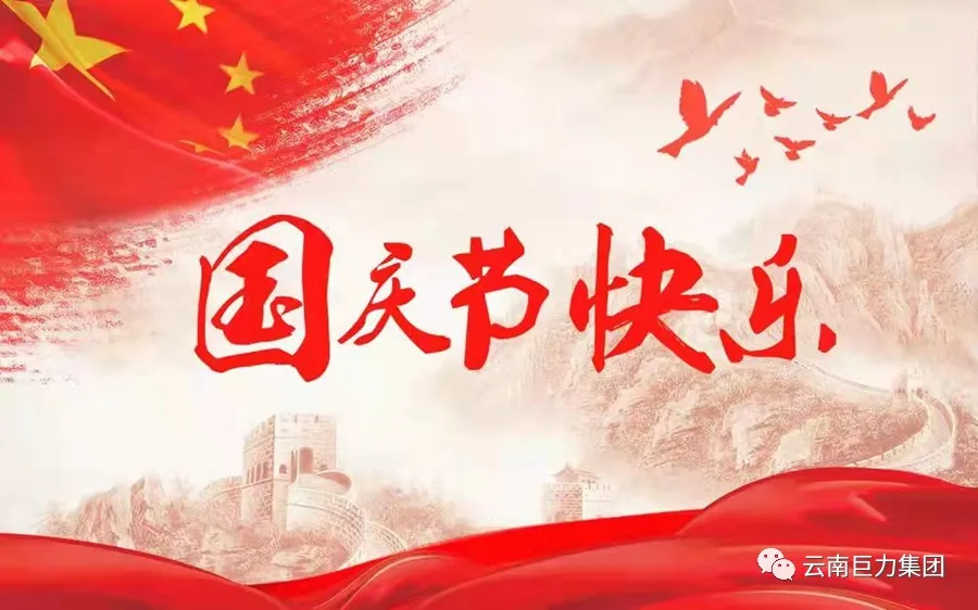 金秋紅葉飛滿天,金桂飄香香滿地,大地飛歌花似錦,銀月柔美掛蒼穹,普天同慶日月好,共享盛世繁華景,在國慶節(jié)來臨之際!我謹(jǐn)代表云南巨力集團(tuán)全體員工,向各位領(lǐng)導(dǎo)、各界朋友及合作伙伴致以崇高的敬意、國慶節(jié)的祝賀和誠摯的問候!