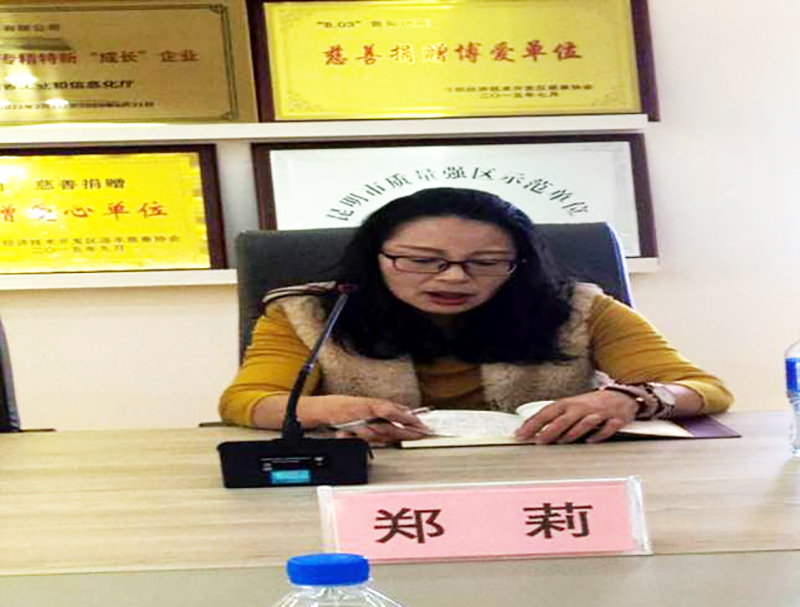 云南巨力集團黨總支紀檢委員、集團工會主席鄭莉發(fā)言。