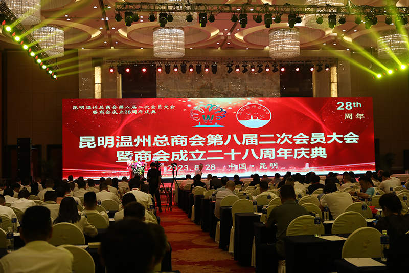 8月28日,昆明溫州總商會(huì)在昆明世紀(jì)金源大飯店隆重舉行以“弘揚(yáng)四千精神、助力共同富!睘橹黝}的第八屆二次會(huì)員大會(huì)暨商會(huì)成立28周年慶典。