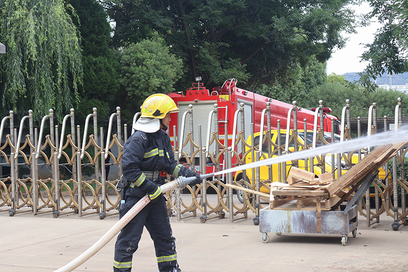 15:00至16:40,全體員工參與了宿舍火災(zāi)逃生、滅火器和室內(nèi)消火栓使用的實操演練。在宿舍火災(zāi)逃生演練前,昆明經(jīng)開區(qū)消防救援大隊春漫路消防站副站長羅卓才對演練流程進行專業(yè)指導(dǎo),并帶領(lǐng)四名專業(yè)消防滅火戰(zhàn)斗員參與了實戰(zhàn)演練。在隨后的滅火器實操演練中,羅副站長率領(lǐng)專業(yè)消防員親自上場講解,并對滅火器的正確使用作了示范。