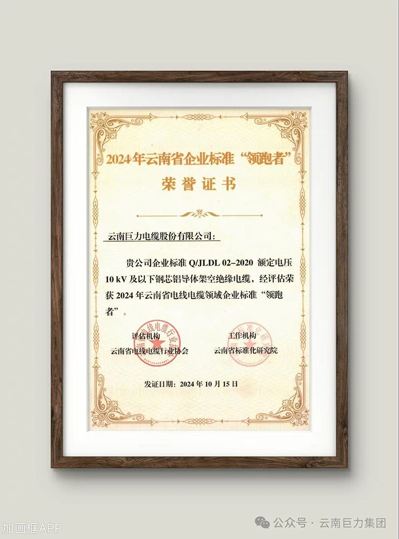 2024年被評為云南省電線電纜領域企業(yè)標準“領跑者”。