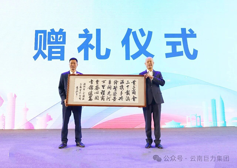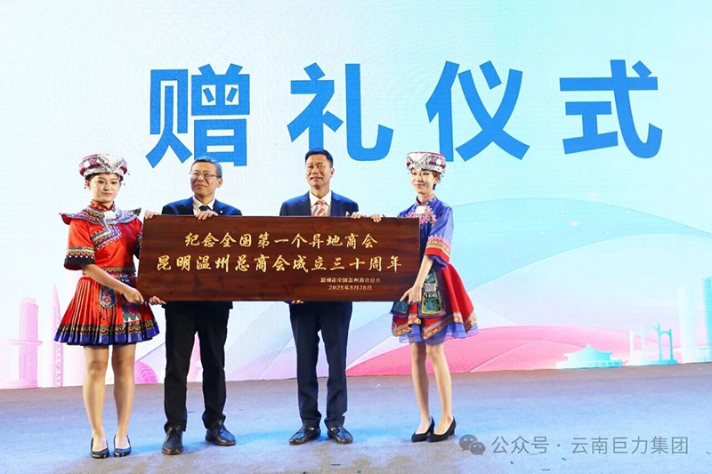 溫州市全國(guó)溫州商會(huì)向昆明溫州總商會(huì)贈(zèng)送紀(jì)念牌匾及書(shū)法作品,昆明市總商會(huì)也向昆明市工商聯(lián)贈(zèng)送書(shū)法作品,彰顯了溫商群體深厚的文化底蘊(yùn)和家國(guó)情懷。
