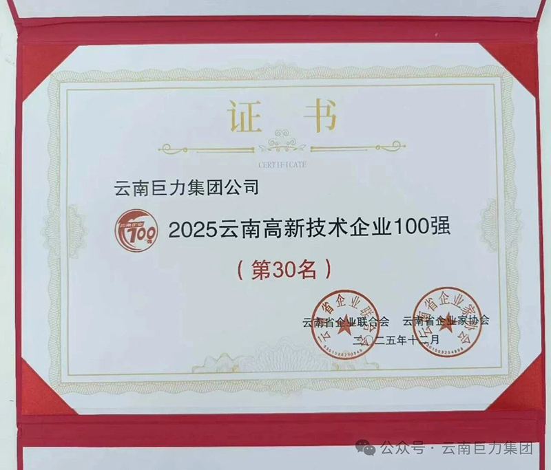 在此背景下,云南巨力集團逆勢而上、穩(wěn)中有進,不僅穩(wěn)居百強行列,更在高端制造與高新技術賽道中脫穎而出,展現(xiàn)出強大的發(fā)展韌性與成長潛力。