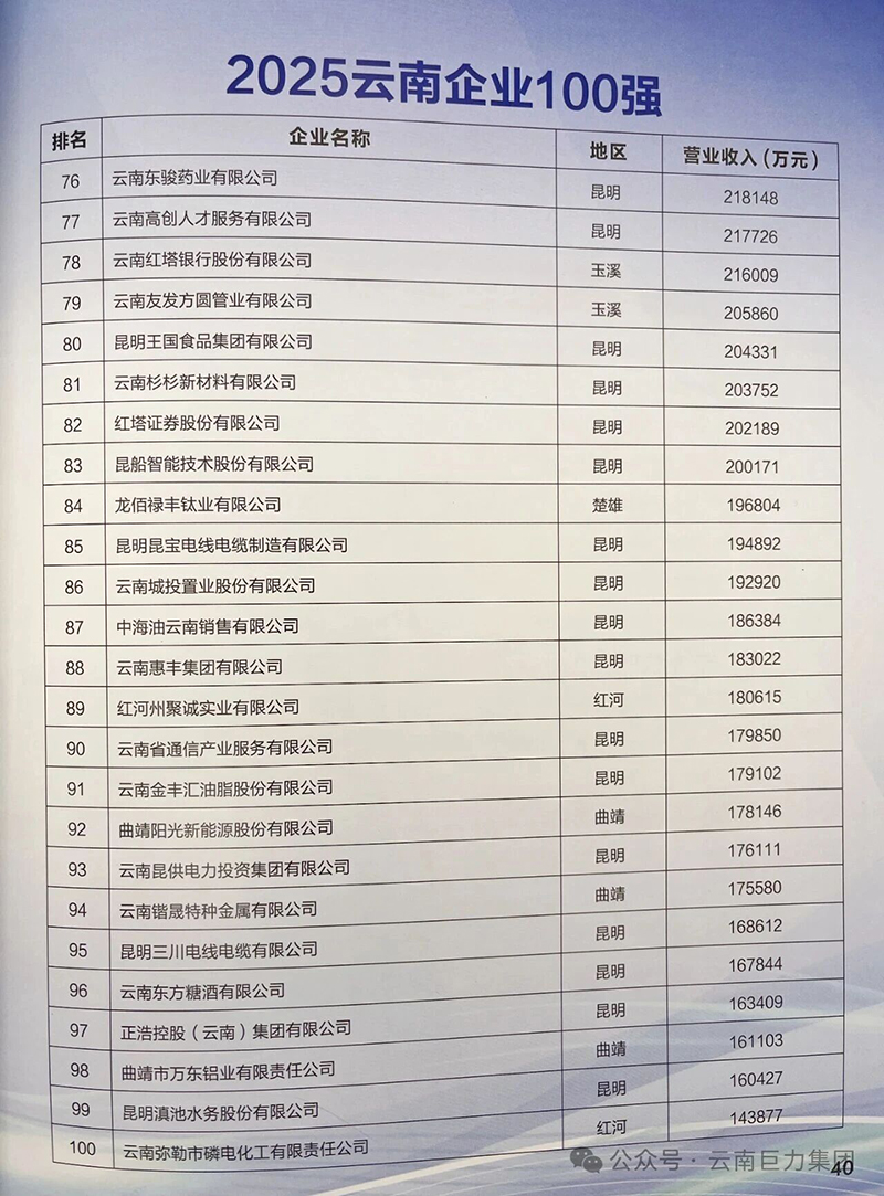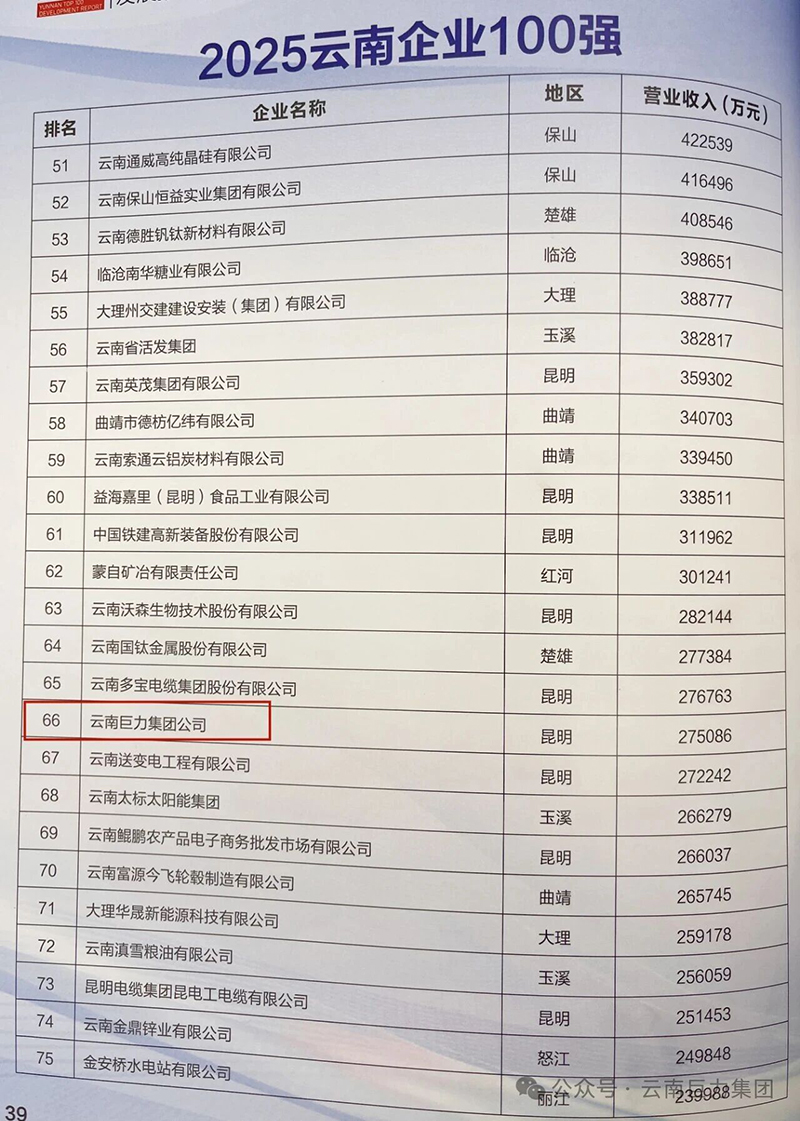 再次祝賀云南巨力集團榮登“2025云南企業(yè)100強”三大榜單!