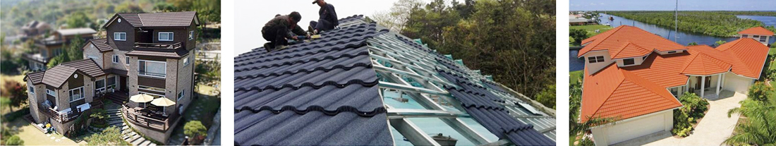 彩石金屬瓦適用于各類坡屋頂建筑的屋面鋪裝和各類建筑的局部裝飾,特別是適用于別墅、中高檔住宅、大型商場(chǎng)圖書館博物館和學(xué)校醫(yī)院政府機(jī)關(guān)和企事業(yè)單位辦公樓,也非常適用于平改坡和舊屋面翻新。