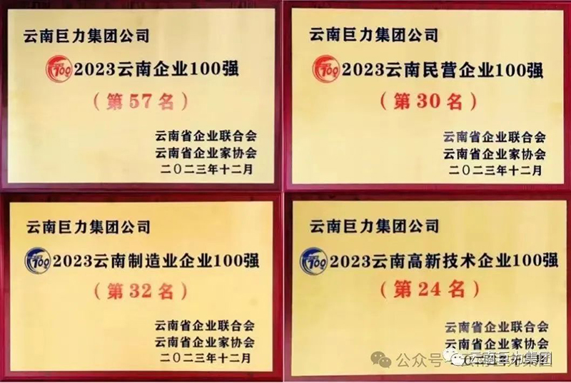 云南巨力集團(tuán)連續(xù)多年榮列“云南民營企業(yè)100強(qiáng)”。
